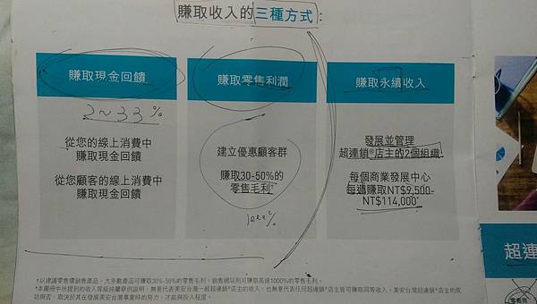 推薦顧客使用的消費能轉0.5%的回饋金 將自己的消費轉成收入點數 可領出來。